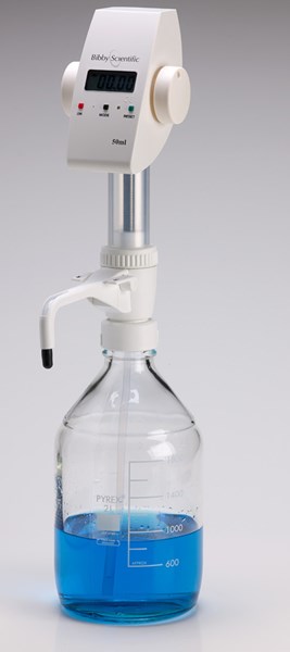 The Stuart Digital Burette is the most powerful laboratory tool yet for precise bottle top titration. Designed with many new features and benefits to deliver accurately and precisely, the Digital Burette utilises the latest technology in volumetric control to allow even greater flexibility. Simply attach to the supply reservoir, switch on and prime; the Stuart Digital Burette is now ready for immediate use. The unit operates on the principle of position displacement, so the large LCD read-out is instant and accurate, providing a precision better than 0.1% of the rated volume. The Digital Burette allows you to move from one titration to another, quickly and simply - all you need to do is note the correct reading, press the zero switch, and you're ready for the next titration. With its light and robust construction, the Bibby Digital Burette is fully portable; making it ideal for both field and laboratory based analysis. A set of three adapters are supplied to enable the unit to be used with the majority of standard reagent bottles. In addition, two models are available, one with a capacity of 30ml, the other able to hold 50ml. The Digital Burette is operated by positive action handwheels, featuring torque limiting controls to prevent damage to the mechanism. 1400ml and 2500ml amber Reservoirs are available in the Bibby range with side entry necks for refilling without removing the burette.