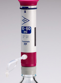 For routine dispensing in the laboratory the new Pressmatic PP range offers economy without compromising on performance. Supplied with factory calibration certificate for guaranteed accuracy the Pressmatic PP is ideal for dispensing many common liquids; dilute acids, buffers, polar solvents, biological solutions. Based on a polypropylene valve block with glass piston and barrel the Pressmatic PP is not suitable for dispensing the following liquids: Concentrated or oxidizing acids, e.g. concentrated sulphuric acid and Non-polar solvents, e.g. hydrocarbons, halogenated hydrocarbons.