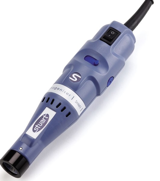 The Stuart SHM1 and SHM2 tissue homogenisers are variable speed, hand-held or retort-stand mounted homogenisers. They combine a high-speed, high-torque motor with a choice of autoclavable rotor-stator generator probes. The model SHM1 tissue homogeniser is suitable for most laboratory applications such as tissue homogenisation, production of emulsions and suspensions, cell disruption and protein extraction. It is lightweight and can be hand-held or mounted to a retort stand for lengthier processing. The SHM2 is a powerful, versatile and durable homogeniser that can handle virtually any processing application, making it ideal for tougher samples and larger volumes.