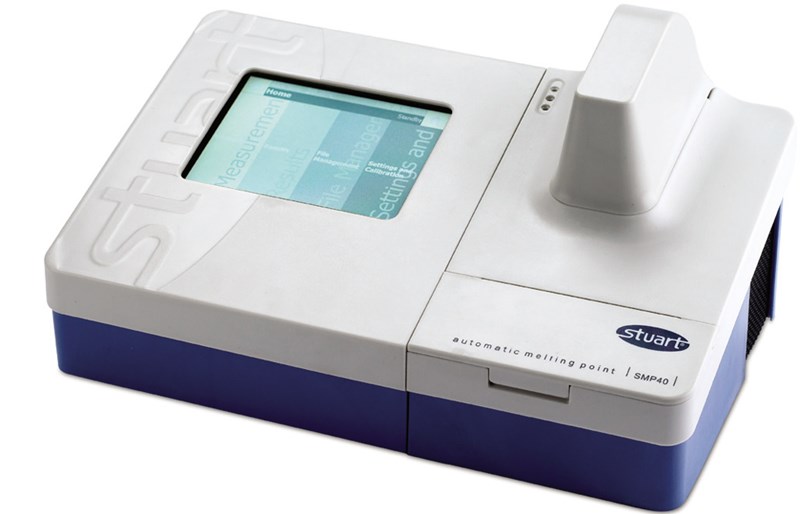 Automatic melting point apparatus The SMP40 automatic melting point uses the latest technology in digital image processing, to accurately identify the melt of up to three samples simultaneously. The unit comes with a 5.7” colour VGA display, on which the melt can be watched real time, or the melt video will automatically be saved as an AVI file that can be reviewed later, either on the unit or via PC, providing traceability long after the sample has gone. The result can also be overridden if for any reason you don’t agree with the result calculated by the image processing algorithm. The SMP40 is fully programmable via the touch screen display, once the user has set the plateau temperature they can select the ramp rate, between 0.1 and 20°C in 0.1°C increments. During use a library of preset methods can be built up to streamline the method input for repeat measurements. For materials where the user is unaware of an approximate melting point, and therefore unable to set the plateau temperature, the SMP40 can be used in rapid melt mode. During rapid melt mode a fast scan of the full temperature range is undertaken to provide an approximate melt temperature, then a method will be automatically programmed with the appropriate plateau temperature to allow a more accurate measurement to be carried out. The SMP40 has an innovative split design concept, the unit can be used as normal or the control side and the melt side can be separated, allowing for the maximum in footprint flexibility. After the samples have been loaded the melt side of the unit can be placed at the back of the bench or even in a fume cupboard to catch any potentially dangerous fumes. Once the unit has been split the control panel side can be used in two orientations, either landscape or portrait to allow the perfect viewing angle whether you are sat or stood at the bench, the screen automatically changes orientation with the unit. The unit can store up to 200 result files with videos, if required data can be easily transferred from the unit to a flash memory drive or PC via one of the USB connectors. The unit has been designed to include a number of other useful features such as slots to accommodate pre-prepared samples and a draw to house your unused melting point tubes. Also included in the draw is a handy glass cutter, which can be used to accurately cut tubes in half quickly and cleanly for users who prefer to use half tubes. All units are supplied with a calibration certificate showing individual serial numbers for traceability. The SMP40 conforms to Pharmacopeia and GLP.
