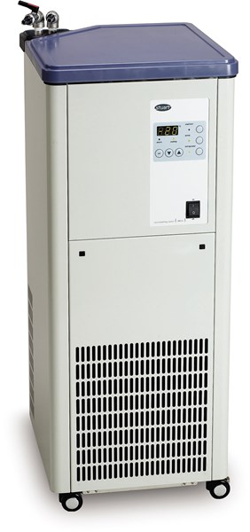 Recirculating cooler With all the features of the SRC4 the SRC14 is ideal where larger volumes are required, or when extra cooling capacity is needed, electron microscopes for example. The unit is floor standing with lockable easy roll castors to ensure excellent mobility. The recirculating cooler offers powerful cooling for an external device. By accurately controlling the temperature of your cooling medium down to -20ºC, efficiency of operations such as condensing can be greatly improved. A recirculating cooler is not only much more powerful than conventional water cooling, but is also an ideal alternative when water consumption is an issue for economical, environmental or practical reasons. The SRC4 provides a powerful cooler with a compact footprint suitable for mounting on or under a bench. The LED digital display clearly shows the current temperature of the cooling medium to ±2°C, while the set temperature is revealed by a one button press. The unit has a dedicated drain for easy emptying and cleaning. It also incorporates a built in safety alarm to indicate an overload relay for the refrigeration unit. A dust filter is incorporated and can be accessed without tools via the removable front panel.