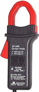 The DC600 Current Probe can measure up to 600 amps DC (as well as 400 amps AC), so there are NO batteries that can run down. Large capacity jaws for large cables NOTES: These probes use the Hall Effect and therefore must be zeroed by the user prior to every use The DC600 does an adequate job of measuring AC current, but is less accurate than our AC current probes.