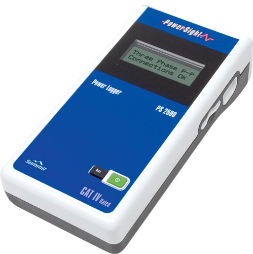 The PS2500 Power Logger has 4 current and 3 voltage channels to measure all circuit types: single-phase, split-phase, three-phase wye, three-phase delta (including open, grounded, & 4-wire delta), 2PT/2CT, DC, 45-66 Hz, and 360-440 Hz applications as well as DC. It measures voltage, current, KW, KVA, true power factor, energy in KWh, Hz and (optionally) total harmonic distortion (THD). The LCD display shows real-time measurements, like a 3-phase multimeter. You can view real-time phasors and waveforms using Bluetooth wireless communications with our PSM software, like a 3-phase oscilloscope. Log graphs show minimums, maximums, averages, for individual phases and the totals for thousands of logging periods. The PS2500 comes with powerful PC software and an automatic Report Writer.
