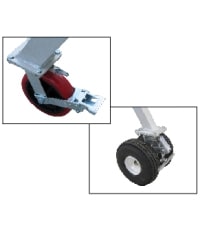 Lockable 8" (200 mm) casters or optional 10" flat free, double wheel caster