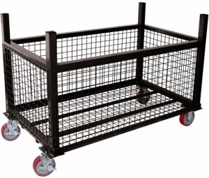 A mobile, heavy duty stacking container for the contractor. Ideal for storage of power cords, fittings, fasteners, safety gear, hardware, loose parts, pumps & hoses, rope slings … and much more!