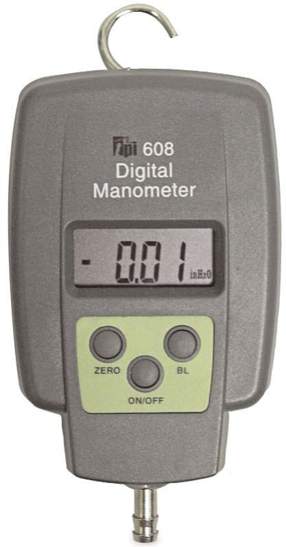 The 608 digital manometer measures pressure or vacuum in four units of measure. Please follow manufacturers recommendations on all equipment being serviced with the 608.