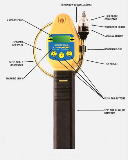 737K1 NFPA 54 purge kit: measure leaks, LEL and % volume, includes A758 purge probe. For use with Combustible Gases and optionally available Oxygen and Toxic Gases. The Sensit® Gold 100 is designed to detect combustible gasses, oxygen content and toxic gases when so equipped with the available sensors. Provides personal protection from potential hazardous conditions and help find the source of combustible gases fast!!! Model 737K1 Applications
