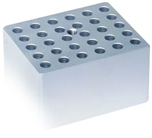 For use with Techne® Dri-Block® heaters, anodized aluminum alloy blocks provide excellent thermal conductivity. Most blocks have a separate hole to accommodate a thermometer if required. Techne® Dri-Block® heaters can accommodate block inserts in any combination (size-permitting). Depending on the combination of blocks selected, plastic spacers can be employed to fill a half-width recess, ensuring optimal thermal performance. A close fitting of sample tubes ensures efficient heat transfer. The new heater design, temperature sensor and updated circuitry provide exceptionally high thermal temperature control uniformity.