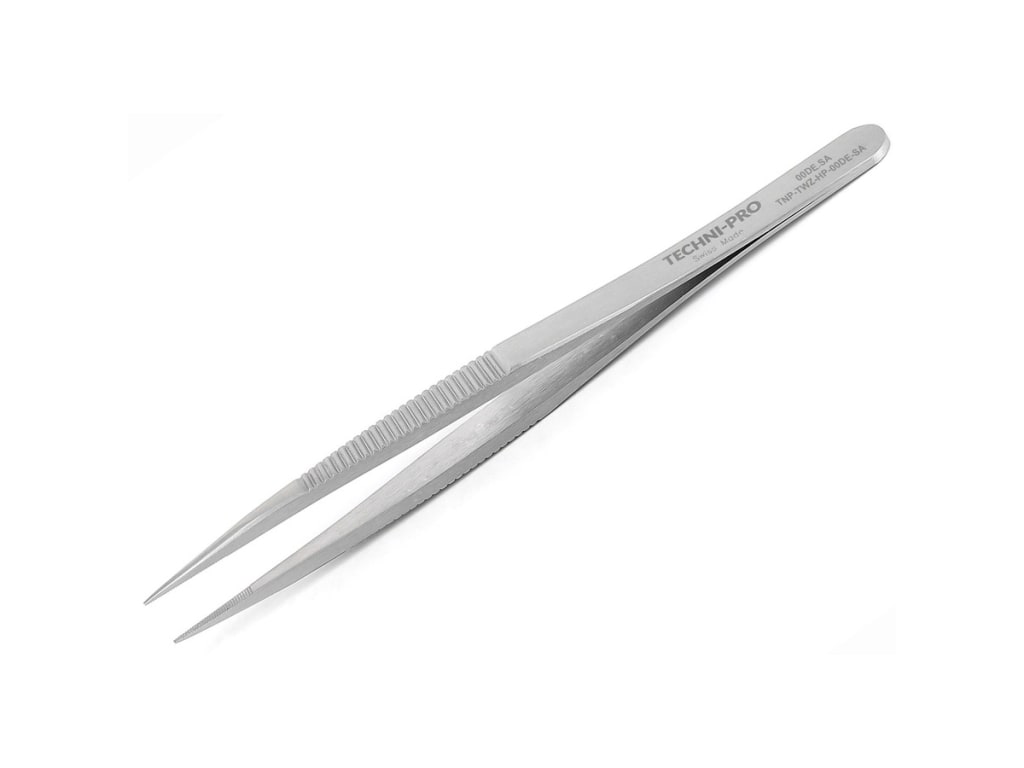 The Techni-Pro TNP-TWZ-HP-00DE-SA 4.7" Type 00D high precision tweezers are suitable for applications that require holding a component very firmly. The line serration provides the tips and the handles with extra grip, also preventing any possible slips.