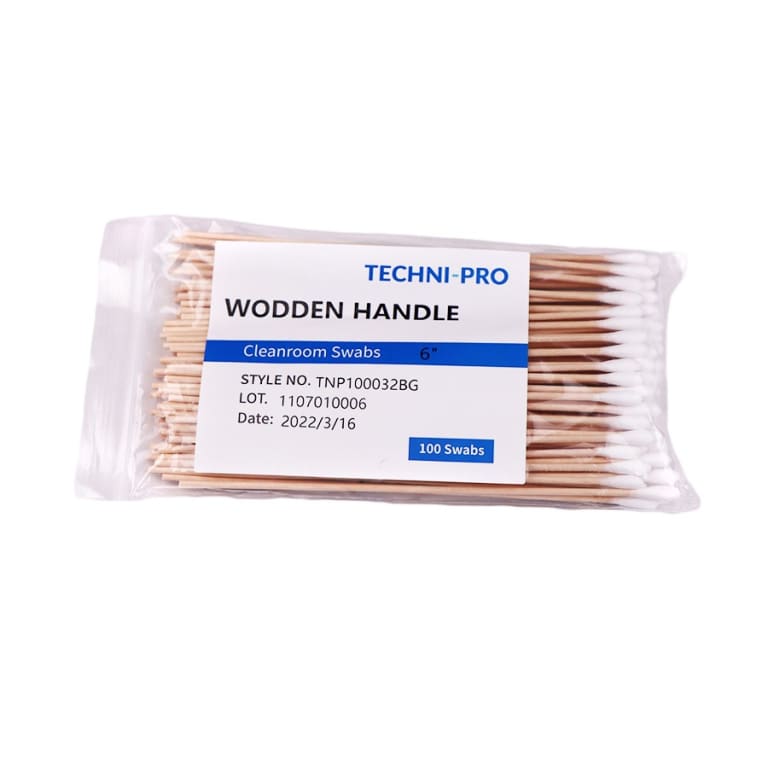 The Techni-Pro TNP100032BG is a 6-inch cotton swab with a wooded handle. It features high strength, a durable head for rigorous cleaning, and it has a high absorption capacity.