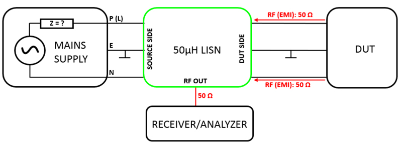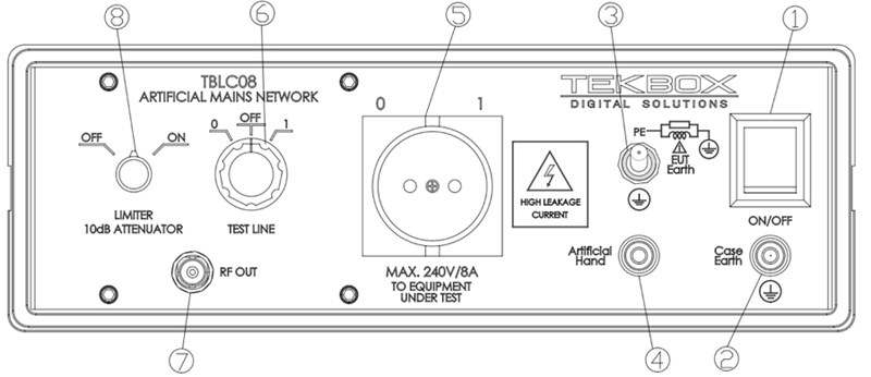 The TBLC08 is a Line Impedance Stabilization Network for the measurement of line-conducted interference within the range of 9kHz to 30MHz, according to the CISPR16 standard. The device is designed for testing single phase, AC-powered equipment with supply voltages up to maximum 240V. Conducted noise can be measured on the phase and on the neutral conductor. The TBLC08 is equipped with a switchable limiter/attenuator and an artificial hand connection. The device is available with country-specific DUT connectors Pre-compliance testing of conducted emissions Full compliance measurement of AC mains supplied products requires a high end set up consisting of an anechoic or screened chamber, a measurement receiver that complies with the requirements of CISPR 16, a 50µH LISN and a suitable table for the measurement setup. Great effort and cost ensures optimum accuracy and repeatability. Pre-compliance measurements target to give an approximation of the EMC performance of the Device Under Test at a fraction of the cost of full compliance testing. The measurement receiver can be replaced by a spectrum analyzer with suitable sensitivity, bandwidth and detectors. The advent of affordable spectrum analyzers with EMI detectors such as the DSA815 from Rigol or similar products made EMC pre-compliance testing affordable for any company which develops electronic products. Together with test accessories from Tekbox, EMC pre-compliance set-ups cost hardly more than a standard oscilloscope a few years ago. Eliminate uncertainty before going to the test house for compliance testing. There is hardly anything that can give you a return on invest as quickly as EMC pre compliance test equipment. Line Impedance Stabilization Networks Any LISN (line impedance stabilization network) is basically a kind of filter. A LISN is always inserted between the supply input terminals of the DUT (Device Under Test) and the supply which is used to power the DUT. It presents a defined impedance for the noise which is produced by the DUT and emitted via the supply cables of the Device Under Test. The impedance seen by the RF emissions is 50 Ohms¦ 50µH which results in 50 Ohms for the most part of the specified frequency range. Only at the lower edge of its bandwidth, the impedance decreases. This impedance curve is specified in the corresponding test standards. Having a defined impedance for the emissions at the DUT terminals eliminates any influence of the power source impedance. Consequently, the measured amplitudes of the noise spectrum become independent of the power source characteristics: