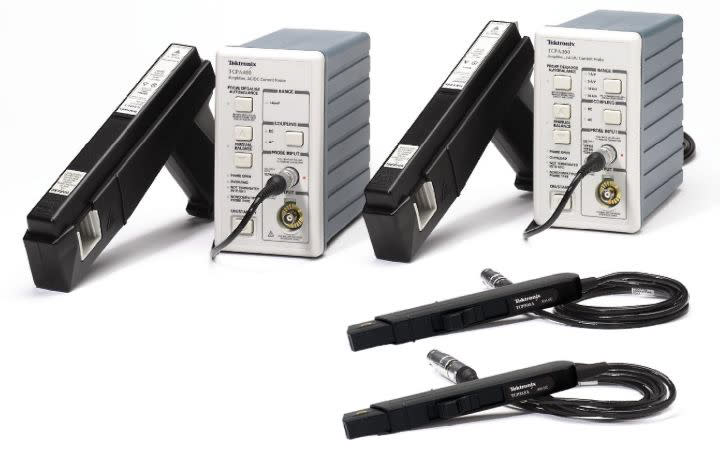 The TCPA300 amplifier, when used with TCP312A, TCP305A, or TCP303 probes, provides a wide range of current measurement capability and spans the gap between low-level milliamp measurements to very high current levels. These three probes provide current measurement capabilities of 30 A, 50 A, and 150 A DC continuous. For even higher current levels, the TCPA400 amplifier with the TCP404XL current probe measures 500 A DC continuous and 750 A DC continuous, derated with duty cycle.