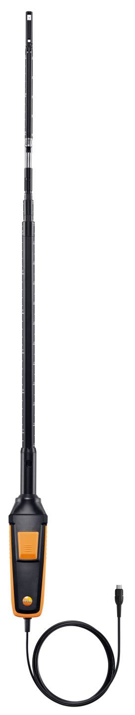 Endlessly versatile: a universal handle can be connected to all probe heads - so you can master more applications using less equipment and save space. The Bluetooth handle makes it more convenient to carry out your measurement and guarantees less cable clutter in the case. Or order the cable handle to connect testo probe heads. This is an advantage if Bluetooth signals are not permitted. If the vane needs to be replaced in the distant future, you can change the probe head. If required, you can also fit the vane probe with the extendable telescope with 90° angle and, if necessary, the telescope extension (both can be ordered separately; in combination 2 m long). This makes it easy to measure at ceiling outlets.