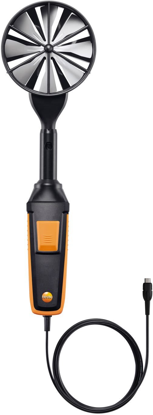 The Testo 0635 9372 is a High-precision 100 mm (4 inch) vane probe head including temperature sensor. The 0635 9372 includes a wired handle (not Bluetooth) for connection to your measuring device. Please note, this probe cannot be used on its own - it must be used with a Testo multifunction instrument, and can be used to measure air velocity, volume flow and temperatures up to +70 °C.