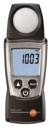 The testo 540 is a small handheld light intensity meter configurable to read values in Lux and Foot Candles. It is the perfect tool to check or measure light intensity and distribution in exhibit halls and display cases since the photo sensor is adjusted to spectral sensitivity of the human eye. The useful hold function stabilizes measurement value. The display of the Max and Min values alternate with the press of a button. The testo 540 light meter comes with the belt case, protective cap, wrist strap, and a set of 2 AAA batteries.
