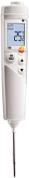 The testo 106 core thermometer contains a thin, robust measuring tip, excellently suited for fast core temperature monitoring in gastronomy, in hotels, large kitchens and supermarkets. The optional, dishwasher-safe TopSafe protects the instrument from dirt, water and impact. If required, upper and lower limit values can be stored in the instrument; as soon as these values are violated, audible and optical warning signals are given. This alarm function and the automatic final value recognition facilitate measurement and support you in recognizing and interpreting measurement values quickly and correctly.