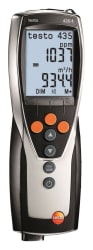 The testo 435-1 is an economic multifunction meter capable of monitoring, analyzing, and diagnosing indoor air quality. In addition, you can easily pinpoint and troubleshoot airflow problems with HVAC systems, and immediately see the results of corrections. Commissioning, validating, benchmarking, or simpy adjusting HVAC systems are all easy with the testo 435-1. The testo 435-1 multifunction meter accepts a wide variety of probes to measure and record airflow, temperature, and indoor air quality readings. Probe dependent menus and selectable user profiles ensure that the testo 435-1 multifunction meter is always ready to use. Easy setup of user defined IAQ and airflow / duct profiles allow for fast measurement of many different tasks, and with a wide variety of probe choices available, the testo 435-1 is ready to handle a vast array of indoor air quality applications.