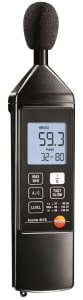The testo 815 is the ideal instrument for the evaluation of sound level in everyday work. The instrument can be used for monitoring measurements in the areas of air conditioning or heating, on combustion plants or at workplaces, however machine or discotheque noise can also be evaluated quickly and precisely. Using the Fast/slow button, the measurement time can be set from 1 s to 125 ms, in order to better evaluate the noise source. The frequency analysis can also be switched from characteristic curve A to C. The characteristic curve A corresponds to the sound pressure perception of the human ear, whereas characteristic curve C can also evaluate the low-frequency components of a sound. With the help of the optional calibrator, the measuring instrument can be recalibrated directly on site with the screwdriver provided. The wind protection cap included in delivery ensures correct measurement results when measuring outdoors, and if required can protect the microphone from dirt and dust.