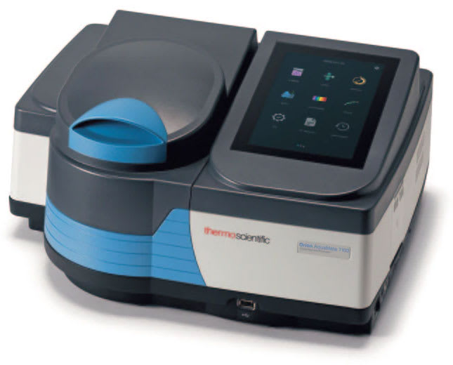 Orion AquaMate 7100 Visible Spectrophotometer includes over 260 preprogrammed methods for easy and convenient measurements using Thermo Scientific™ Orion™ AQUAfast™, Merck, and CHEMetrics reagents. The preprogrammed test methods allow simple, accurate analysis of acid capacity, alkalinity, aluminum, ammonia, ammonium, antimony, AOX, arsenic, BOD, boron, bromine, cadmium, calcium, chloride, chlorine, chlorine dioxide, chromate, chromium, COD, color, copper, cyanide, cyanuric acid, DEHA, detergents, dissolved oxygen, fluoride, formaldehyde, gold, hardness, hydrazine, hydrogen peroxide, iodine, iron, lead, magnesium, manganese, mercury, molybdate, molybdenum, monochloramine, nickel, nitrate, nitrite, nitrogen, oxygen, oxygen scavengers, ozone, palladium, pH, phenol, phosphate, platinum, potassium, silica, silver, sodium, sulfate, sulfide, sulfite, surfactants, suspended solids, tin, TOC.