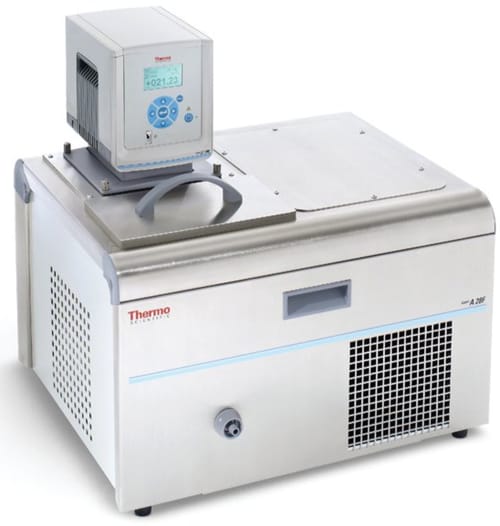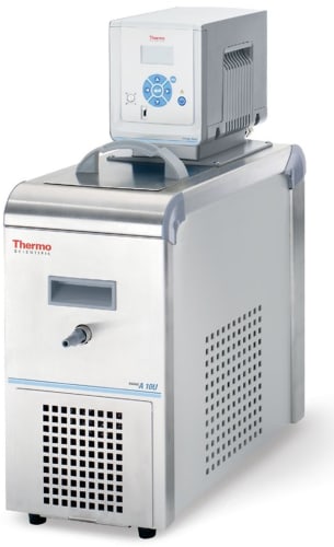 The Thermo Scientific™ A10B refrigerated bath features a large work area, enabling high throughput and workflow efficiency, with temperatures ranging from −10° to +100°C and maximum bath volume of 30 liters. Configure your refrigerated bath with a Thermo Scientific STANDARD or ADVANCED controller that meets your specific application needs.
