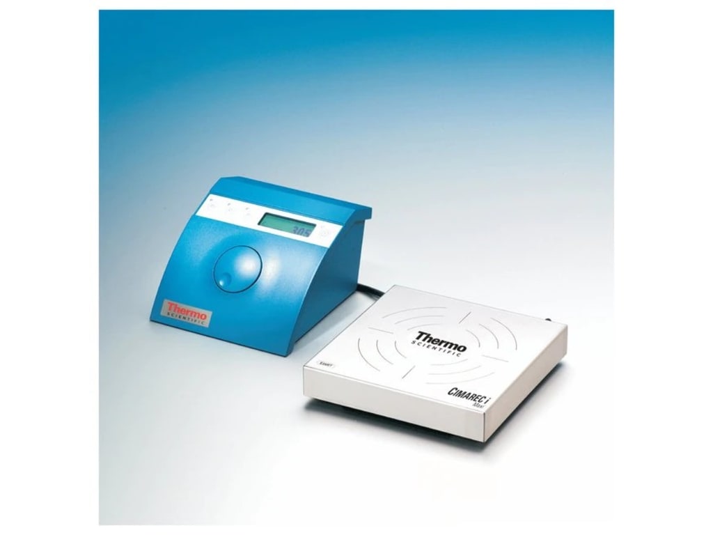 Handle challenging stirring environments with Thermo Scientific Cimarec i Compact and Maxi Stirrers, which are 100% maintenance- and wear-free, hermetically sealed units. With powerful magnets and no moving parts, these inductive-drive stirrers are designed to go into water baths and incubators. The Cimarec i Compact and Maxi series stirrers come standard with your choice of controller. The hermetically sealed stainless-steel housing resists dust and microorganisms is chemical-resistant and is IP68 protection class rated. The stirrers Operating conditions are -10°C to +56°C in the air; 0°C to 50°C submerged in water making it submersible for use in water baths up to 50°C. This stirrer can stir speeds up to 1400rpm and stir volumes up to 1.5L.