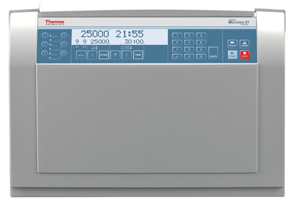 Handle a diverse range of laboratory applications with the Thermo Scientific™ Multifuge™ X1 Centrifuge Series, which features a broad range of rotors and adapters. Featuring industry-leading throughput and energy-efficient operation, this centrifuge series can handle a range of general-purpose processing, including cell culture, microplate, bioproduction, blood separation, and microbiology. It features a convenient 1L capacity and is available in both ventilated and refrigerated units, which are ideal for processing temperature-sensitive samples.