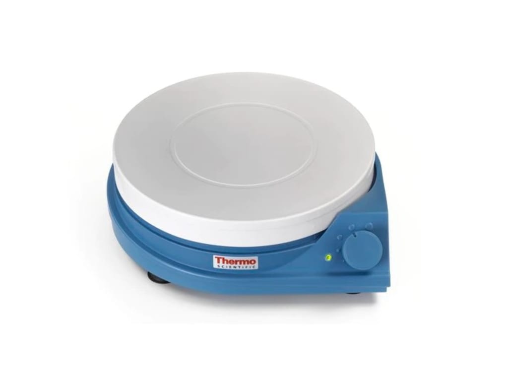 Experience reliability with the plug-and-play Thermo Scientific™ RT Basic Series Magnetic Stirrers, ideal for routine stirring applications. A low-profile, lightweight design that has an extremely small footprint. The RT basic stirrers feature a chemical-resistant polypropylene top and body, a strong magnetic coupling to ensure consistent stirring during experimental procedures, and a brushless DC Motor that will not generate heat. Analog speed control ranges from 150 to 2500rpm. All units include two non-slip silicone plate covers for added protection from spills.