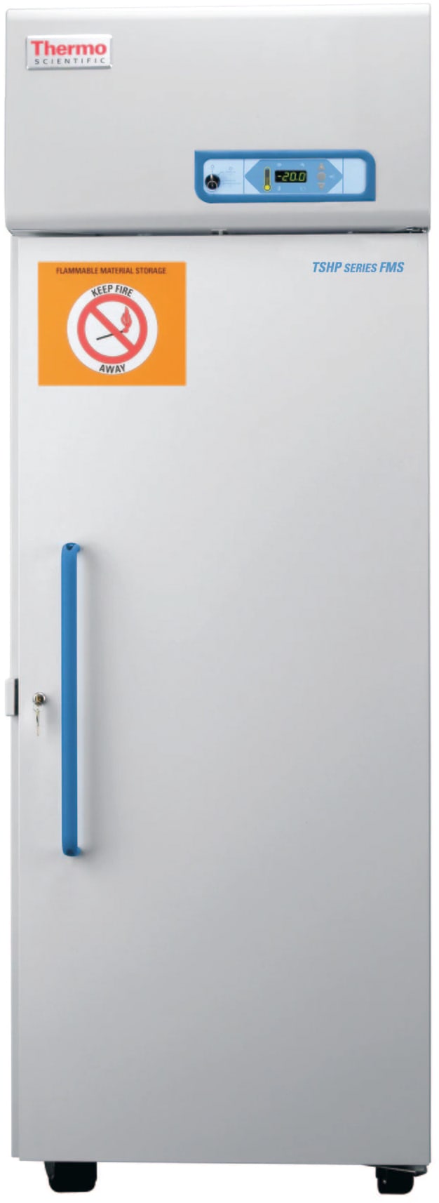 Protect flammable materials, solvents and intermediates using Thermo Scientific™ TSHP FMS High-Performance Laboratory Freezers, which meet stringent U.S. Pharmacopeia standards for drug storage as well as the NFPA safety provisions for the storage of flammable liquids. These freezers are designed to maintain a safe environment while keeping valuable samples within a tight temperature range. Each is listed by UL as a special purpose freezer intended for flammable material storage in accordance with NFPA 45, 70 and 99. 45, 70 and 99.