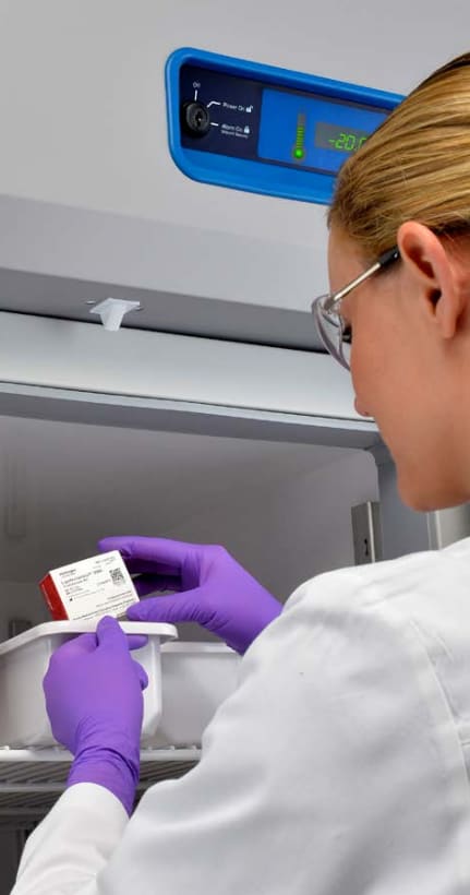 Thermo Scientific™ TSX Series high-performance -20°C manual defrost enzyme freezers are designed with features that support sample protection and sustainability objectives for the storage of enzymes requiring -20°C. The Series’ V-drive technology is designed to provide temperature uniformity that continually adapts to user patterns, offering significant energy savings without compromising protection.