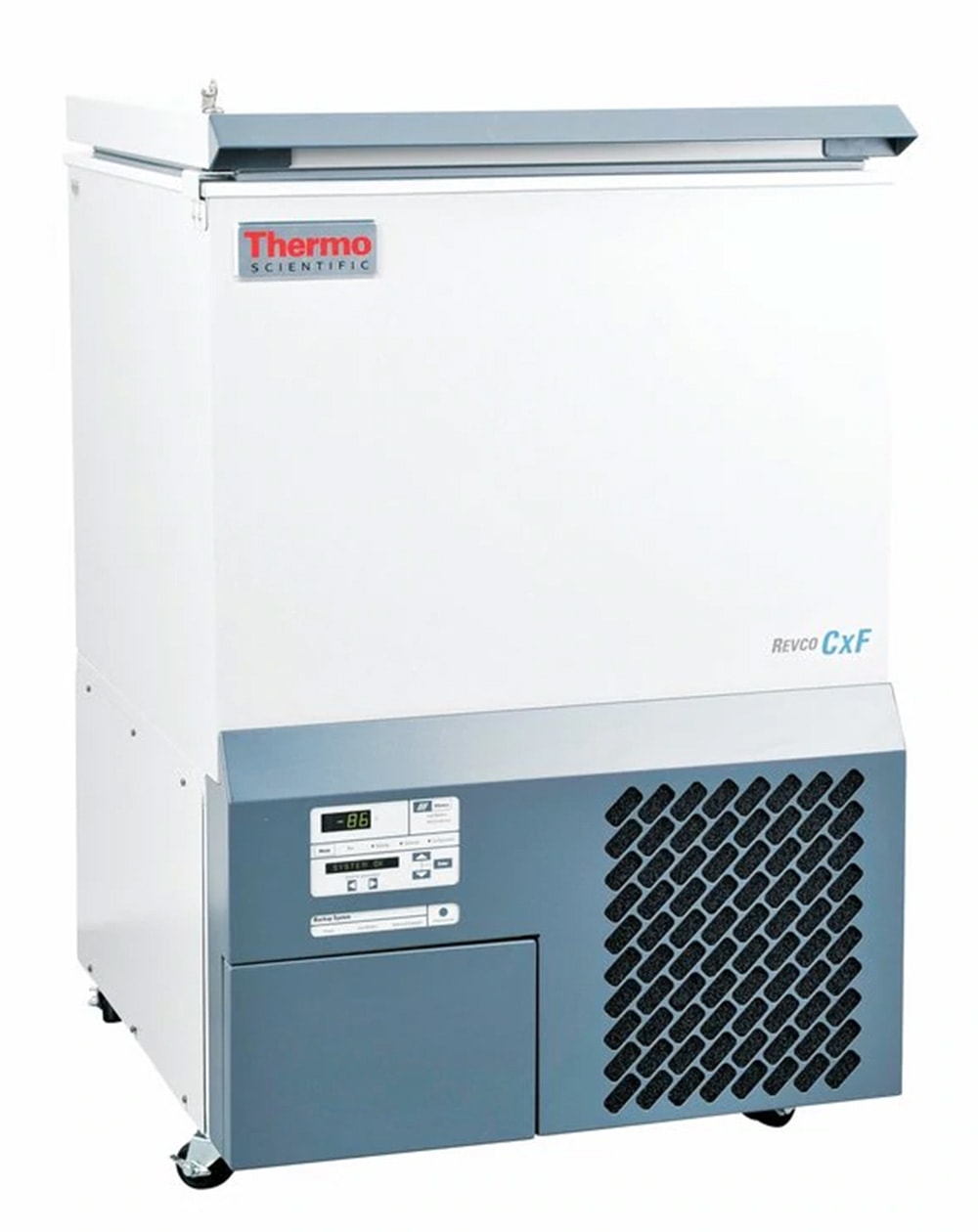 Reliably store samples with versatile Thermo Scientific Revco CxF Series -40°C ultra-low temperature chest freezers. Available in four convenient sizes and a full range of racking solutions, this unit delivers all the same sample protection features of our ExF and DxF freezers.