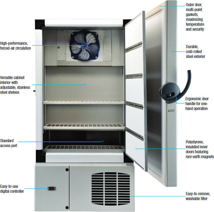 Rapidly freeze plasma with the new Thermo Scientific XBF40D-MD -40°C Blast Freezer - a breakthrough sample preparation device for use prior to cold storage. Your freezer is not a sample preparation device. Ultra-low and laboratory-grade freezers are designed to maintain samples at cold temperatures for long-term storage. They are not designed for and do not have the speed or refrigeration capacity to rapidly freeze plasma and other critical storage. Using the new XBF40D-MD for rapid cooling reduces the stress on your sample storage freezer, and freezes your plasma quickly and efficiently. Your freezer is not a sample preparation device Ultra-low and laboratory-grade freezers are designed to maintain samples at cold temperatures for long-term storage. They are not designed for, and do not have the speed or refrigeration capacity to rapidly freeze plasma and other critical storage. Using the new XBF40 series of blast freezers for rapid cooling reduces the stress on your sample storage freezer, and freezes your samples quickly and efficiently.