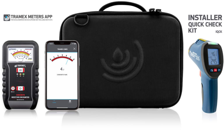 The Tramex IQCK is a compact kit for instant, non-destructive, quantitative moisture content testing of concrete floors and ambient dew-point conditions at the time of installation. Even if pre-installation tests have been performed, checking the moisture content percentage and ambient dew-point conditions at the time of installation is crucial to ensure successful installation.