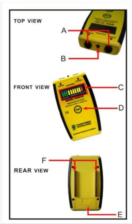 The SRM330 Surface Resistance Meter tests materials for electrical resistivity/resistance according to EOS/ESD, CECC, ANSI, and ASTM test procedures. The battery-powered SRM330 is equipped with built-in parallel electrodes for quick surface measurements and includes two lightweight "travel" electrodes that eliminate the cumbersome weight of standard kits. When pressed, the travel electrodes simulate the 5 lbs of pressure necessary to measure resistance point-to-point (RPP) or resistance-to-ground (RTG).