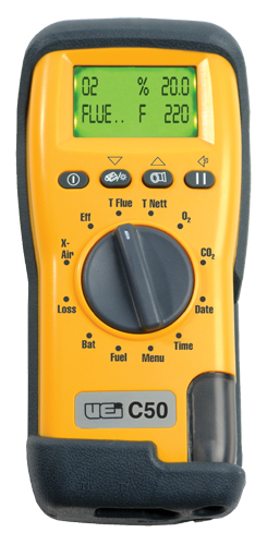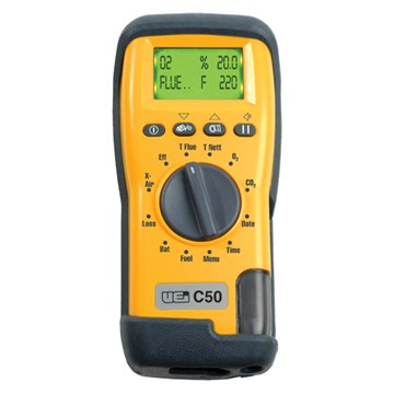 The C50/C75 enables HVAC professionals to accurately test and service all residential combustion appliances. The extra large backlit LCD displays two parameters at one time. Easily choose the desired combustion parameter with the rotary selector. The optional printer allows you to print your readings to document your test results.