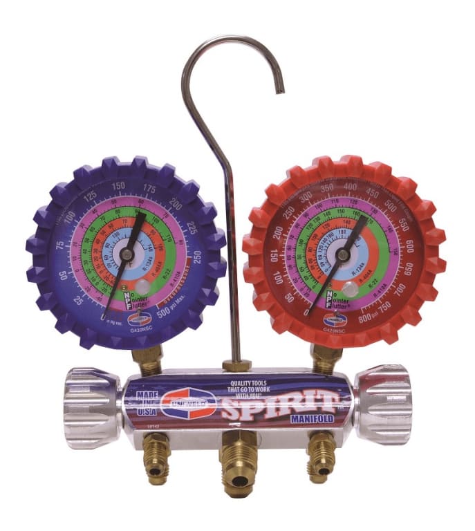 2-V SPIRIT ALUMINUM MANIFOLD WITH 5 FT. HOSES (R410A/R22/R404A/R134a)