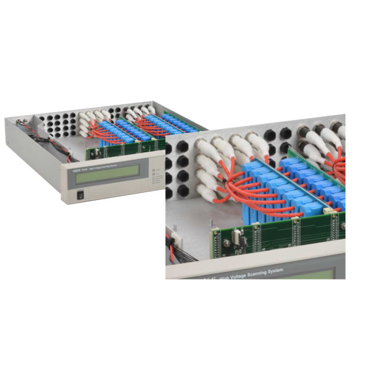 The 964i holds up to 8, eight channel HV switching cards. That’s up to 64 test points in a single mainframe – multiple units can be combined to increase capacity