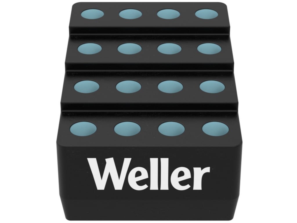 The Weller WCTH is an ESD-safe cartridge tip holder that can hold up to sixteen cartridge tips and is compatible with all Weller Active RT cartridge tips. The WCTH keeps tips safely stored when they are not in use and helps keep your workspace organized. The design of the cartridge holder allows visibility of the tip styles and sizes.