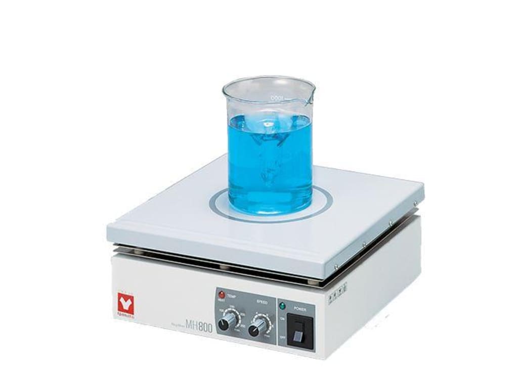 The MH800 magnetic stirrer with hot plate have strong stirrer with ceramic coating material. Hot plate is made of chemical resistant, heat conductive aluminum with ceramic coating provide stirrable for high viscosity sample and volume knob type temperature control.