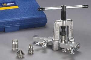 This combination tool both flares and swages soft or annealed copper and similar materials.
