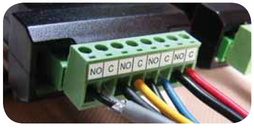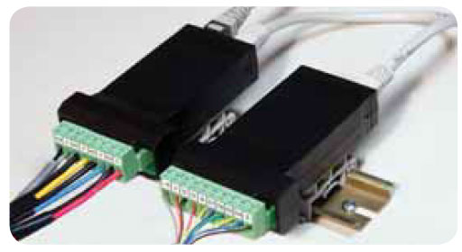 Removable screw terminal blocks accept 12 to 22 AWG wire, RJ45 for external relays, digital I/O, and serial communication adapters. |