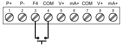 3.3 VDC on contact. Connect normally open contacts across F4 to COM. |