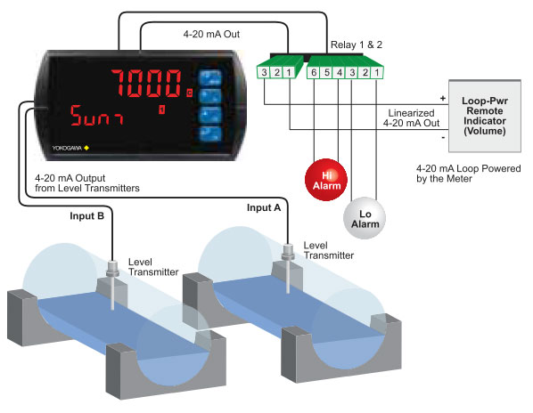 Linear, square root, programmable exponent, or round horizontal tank volume calculation. |