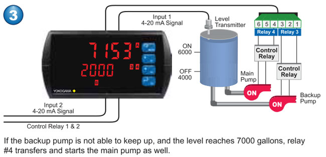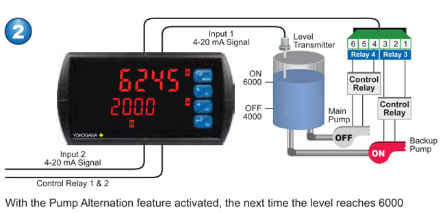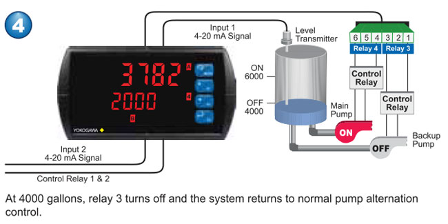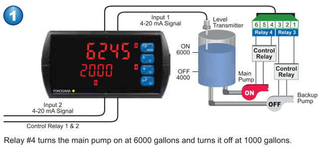 automatic (non-latching), latching (requires manual acknowledge), sampling (based on time), pump alternation control (2 to 8 relays), Off (disable unused relays and enable interlock feature, manual on/off control mode). |