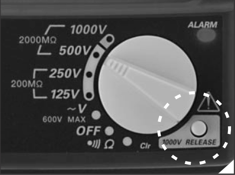 The MY40 alerts you by turning on the LOW symbol and sounding the buzzer if the measured value is smaller than the reference value. You can allocate as many as three user-defined reference values to each rating. The factory-set defaults are 0.1 MΩ, 0.2 MΩ and 0.4 MΩ.