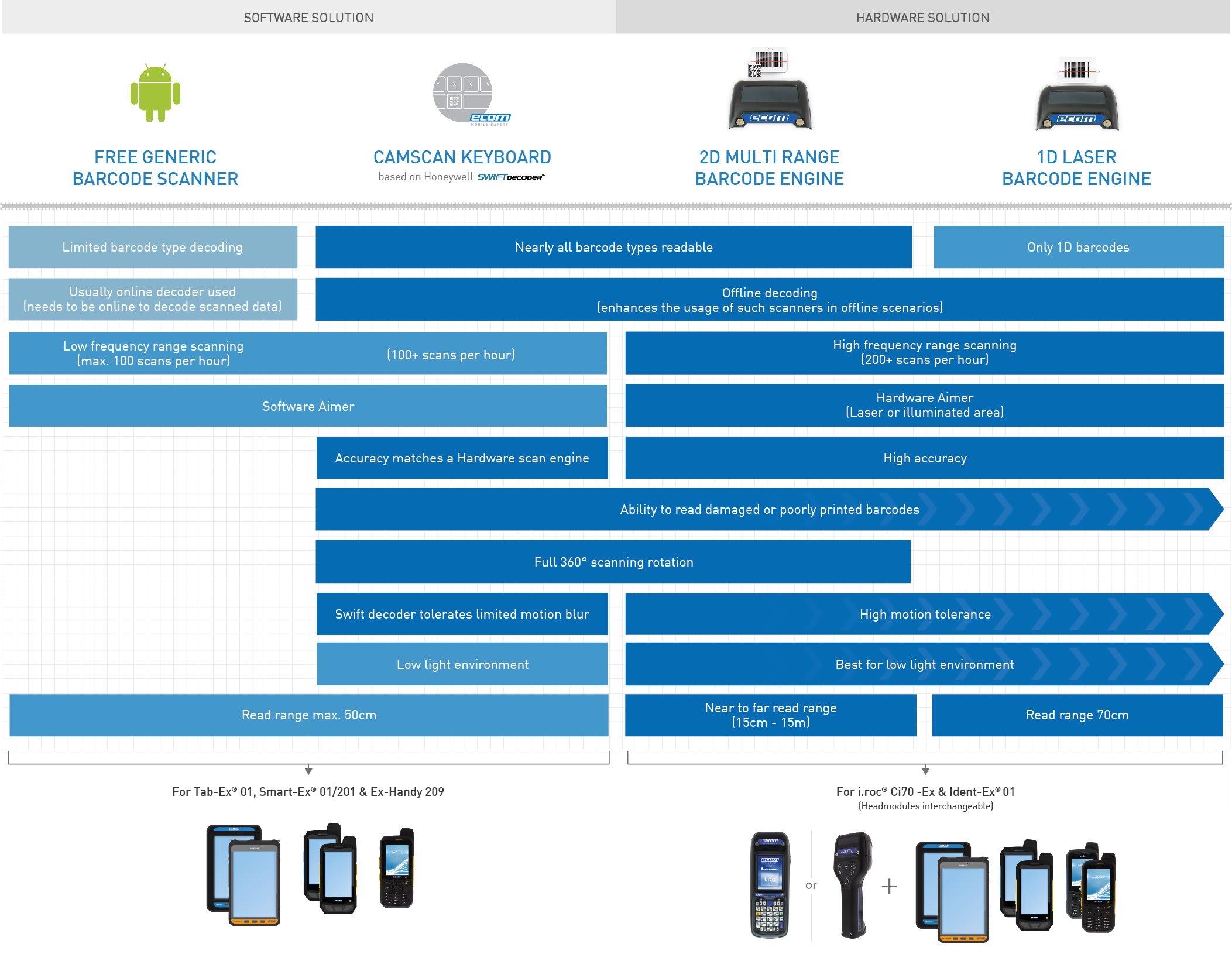 • Flexibility – online / offline scanning & changeable head modules