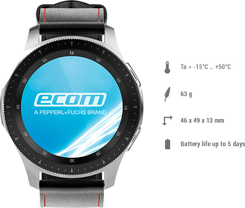 Hands-free navigation via advanced voice control and wrist gestures simplifies operation. A rotating bezel allows for intuitive, quick, and easy scrolling through apps and instructions, even with gloves. The powerful battery can run for up to five days, and the GPS can be used for up to 28.5 hours. The rugged Smart-Ex Watch offers an extended temperature range from -15 °C to +50 °C, and its durable design withstands impact and mechanical vibration.