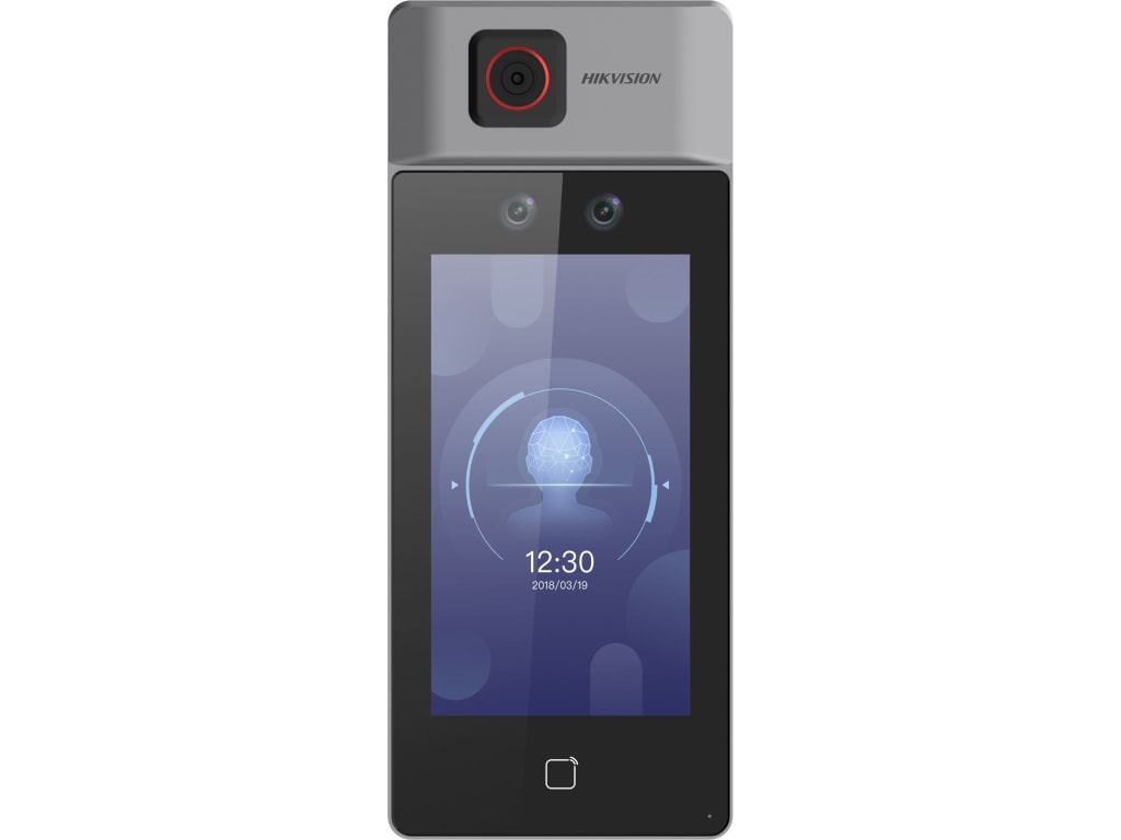The Hikvision kiosk provides an accuracy of ±0.9°F and can measure subjects from 1.6 to 4.92 feet away. It features facial recognition, can be used for attendance purposes and also has access control functionality. This kiosk can be mounted on either a wall or optional floor stand.