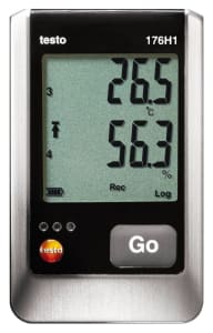 The Testo 176H1 humidity and temperature measurement logger has a large display that makes it ideal for the monitoring of temperature and humidity in enviro chamber and storage rooms. The 176H1 is a RH and temperature data logger with external NTC humidity and temperature sensor connections. Creation of Excel Spreadsheets, PDFs, and data analysis are all easily achieved with the free, downloadable ComSoft software.